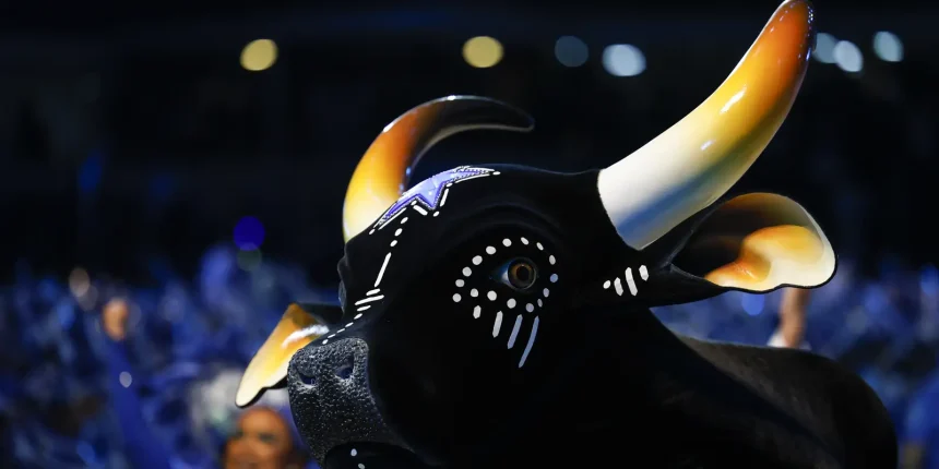 Este ano, o boi azul e branco, fundado em 1913, vem com o tema “É tempo de retomada” para disputar o tetracampeonato no Festival de Parintins. Um dos responsáveis por essa missão é Algles Ferreira, que está há mais de 30 anos no Caprichoso e que há cinco anos assina os principais módulos alegóricos do bumbá na apresentação, como lenda amazônica e ritual indígena.